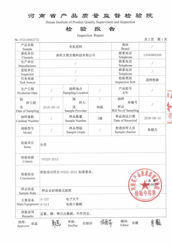 LUOYANG PRESIDENT BIOTECH Co., Ltd. latest organic fertilizer inspection report came out!!!